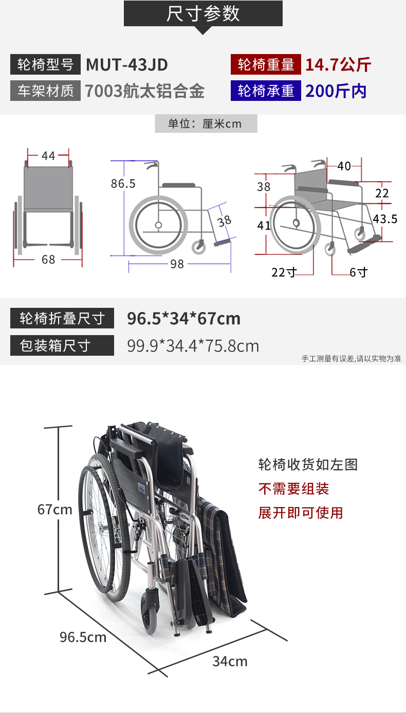 MIKI三貴 手動(dòng)輪椅車MUT-43JD 產(chǎn)品參數(shù):