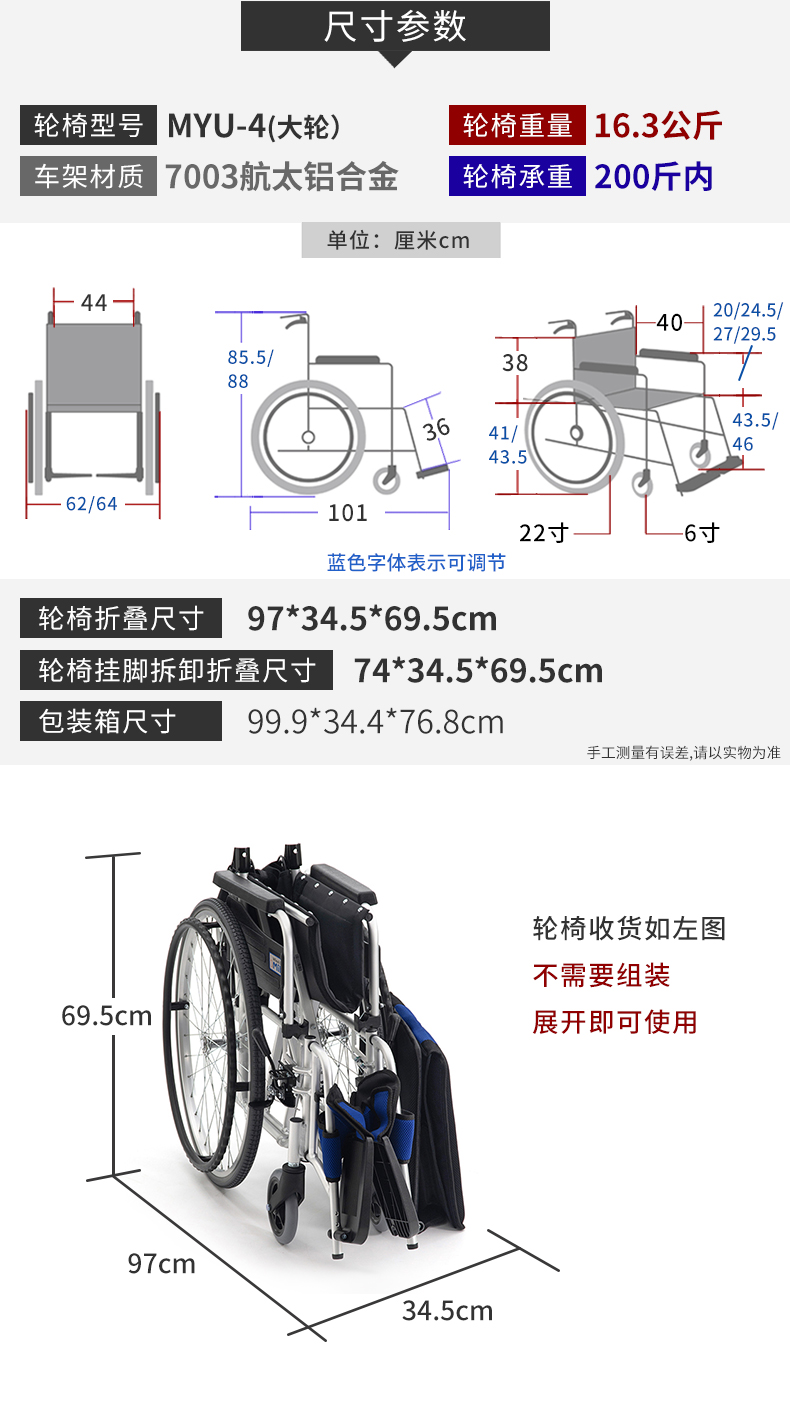1. 輪椅型號(hào):MYU-4 (大輪)