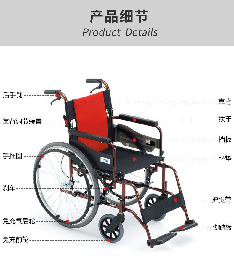 MIKI三貴 手動輪椅車MCV-49JL 產(chǎn)品特點: