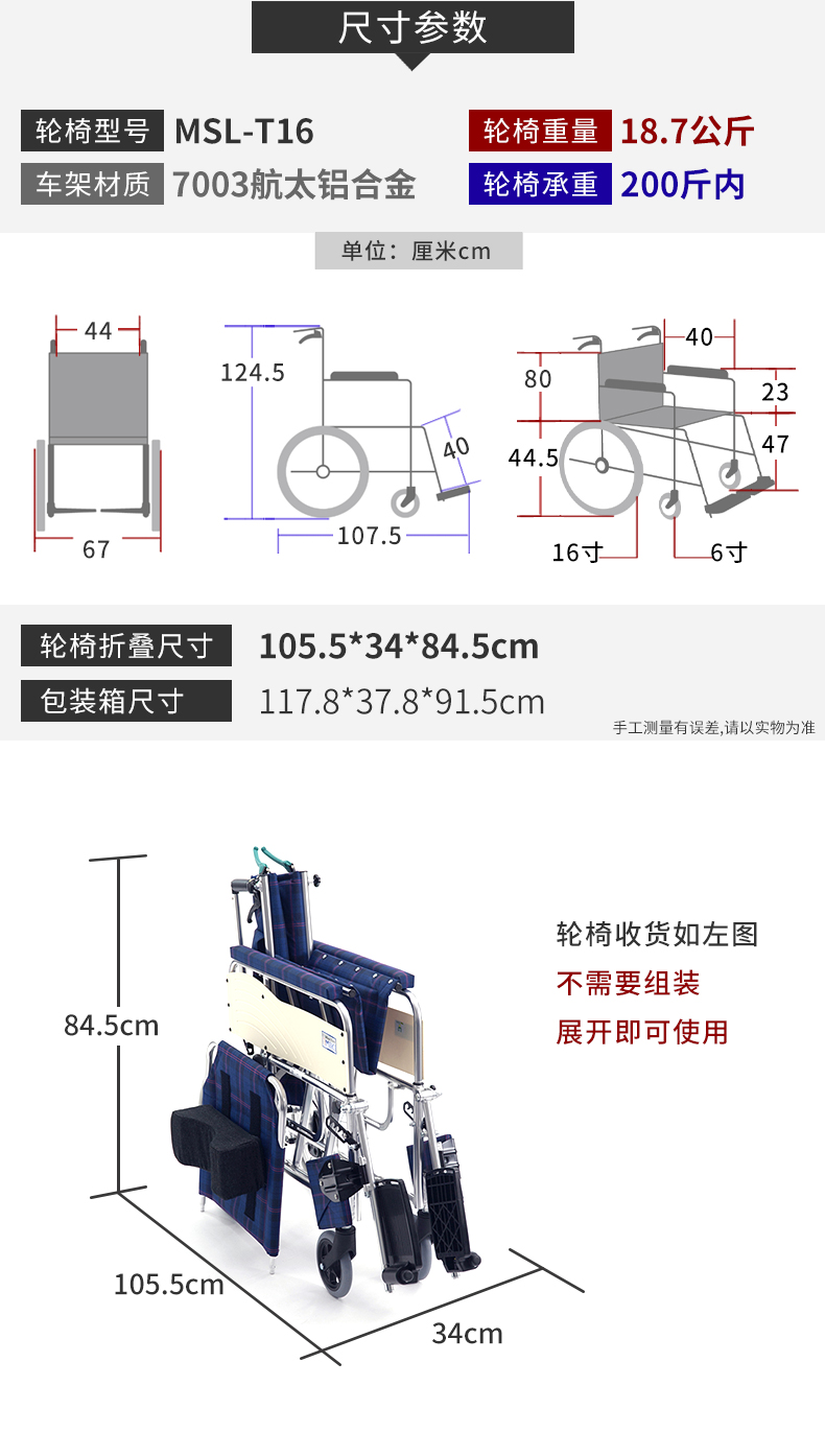 1. 輪椅型號:MSL-T16