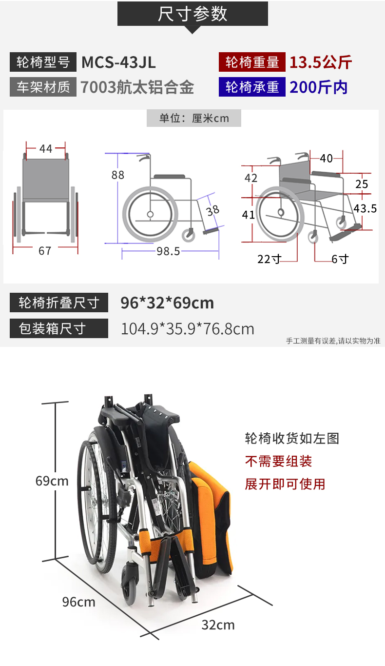 MIKI三貴 手動輪椅車MCS-43JL 產(chǎn)品參數(shù):