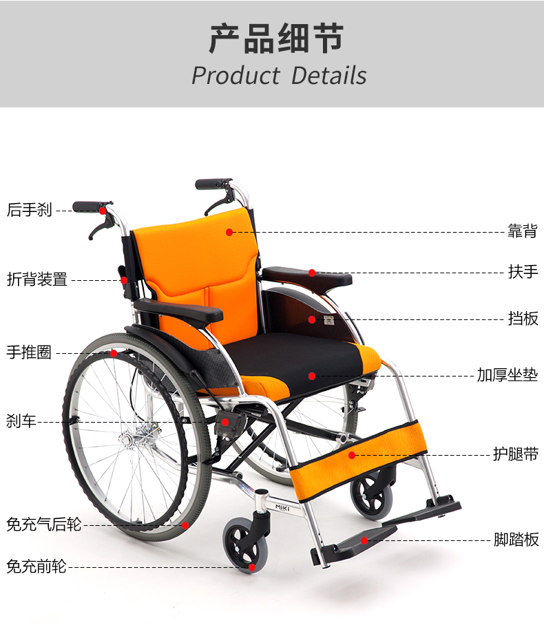 MIKI三貴 手動輪椅車MCS-43JL 產(chǎn)品特點: