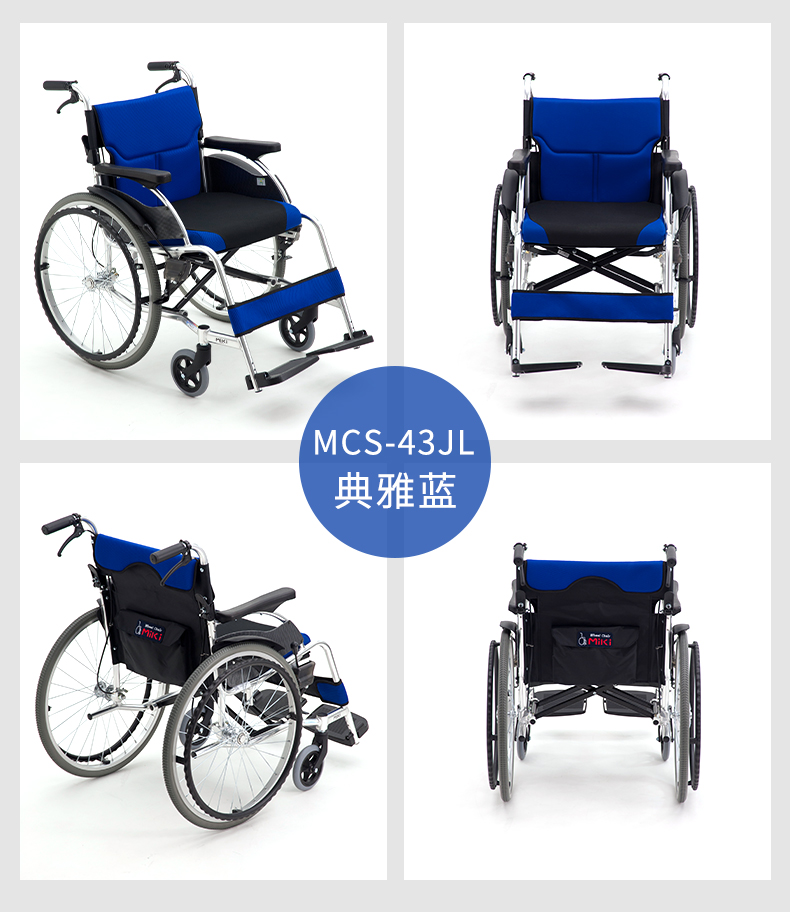 MIKI 手推輪椅車 MCS-43JL型 藍色 W4