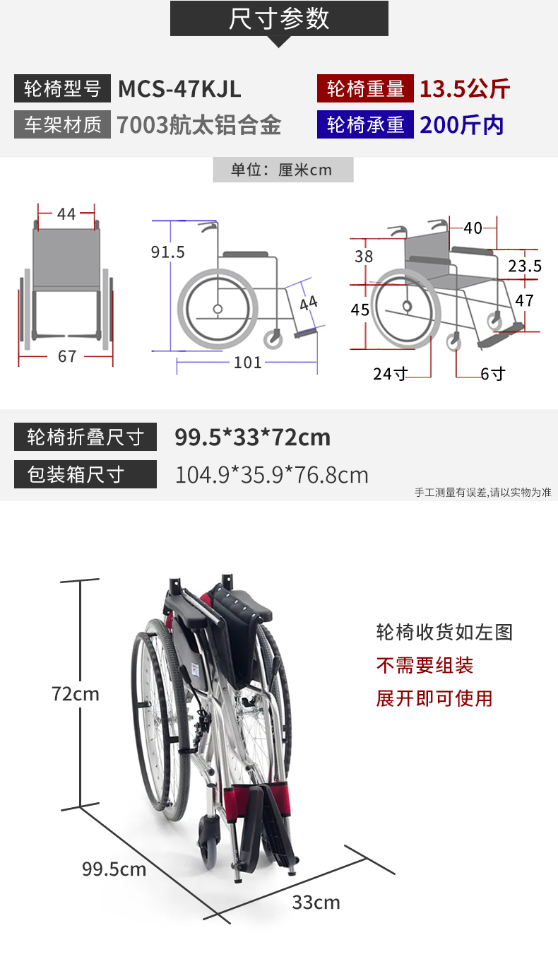 1. 輪椅型號(hào):MCS-47KJL