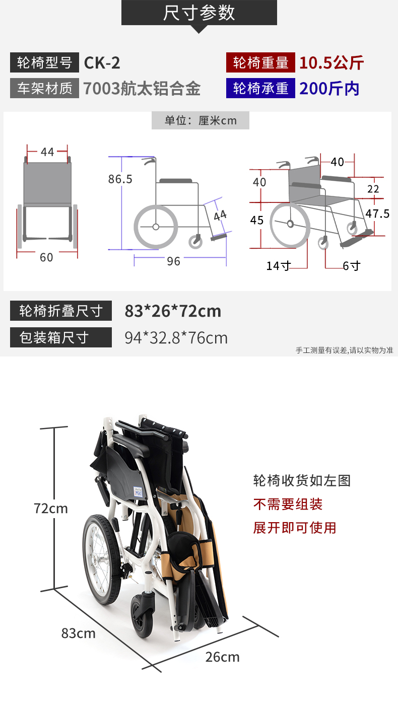MIKI三貴 手動(dòng)輪椅車CK-2 產(chǎn)品參數(shù):