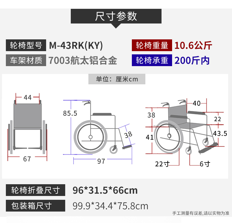 MIKI三貴 手動(dòng)輪椅車M-43RK 產(chǎn)品參數(shù):