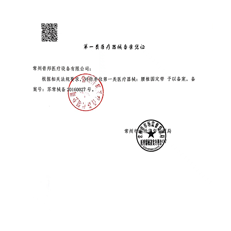 - 產(chǎn)品注冊證號:蘇常械備20160027號