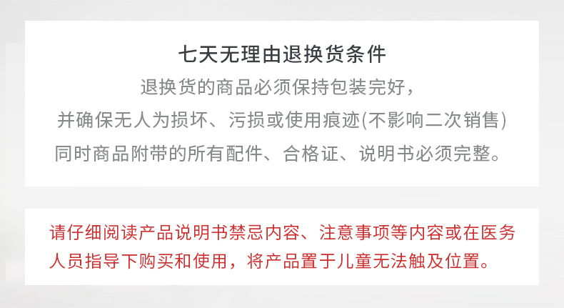 3、關(guān)于產(chǎn)品標題,由于網(wǎng)站搜索功能特性,為方便消費者購物搜索,所起標題關(guān)鍵詞僅適用搜索功能,不涉及廣告宣傳和功能描述。“械”字號的產(chǎn)品不能代替藥品,請知悉。