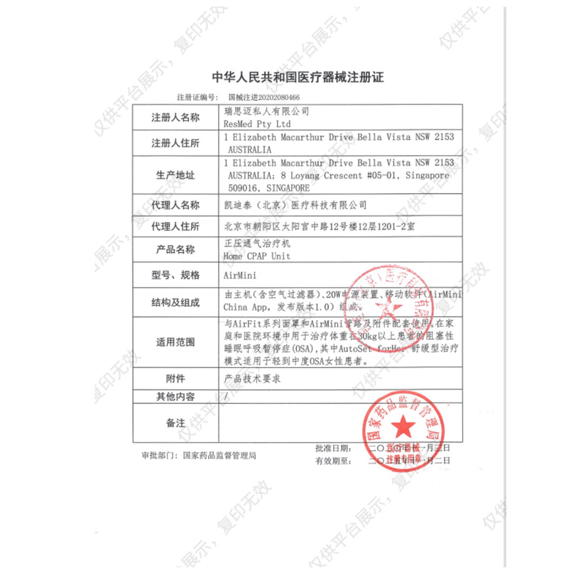 • 生產(chǎn)企業(yè):瑞思邁公司 RESMED