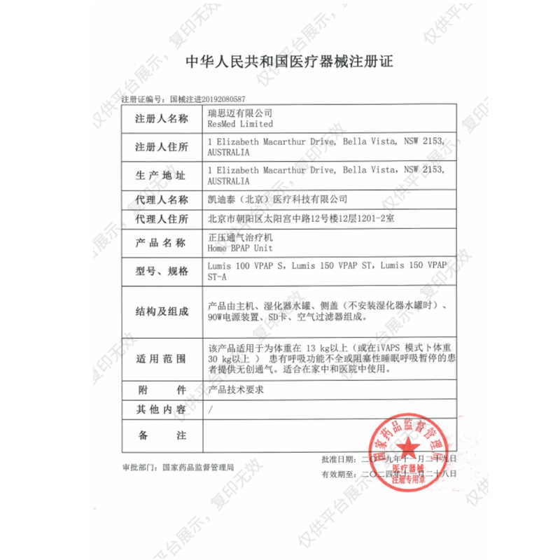 Resmed 瑞思邁呼吸機(jī) Lumis 150 VPAP ST 投訴電話:021-56532303 訂購(gòu)聯(lián)系電話: 021-51601230