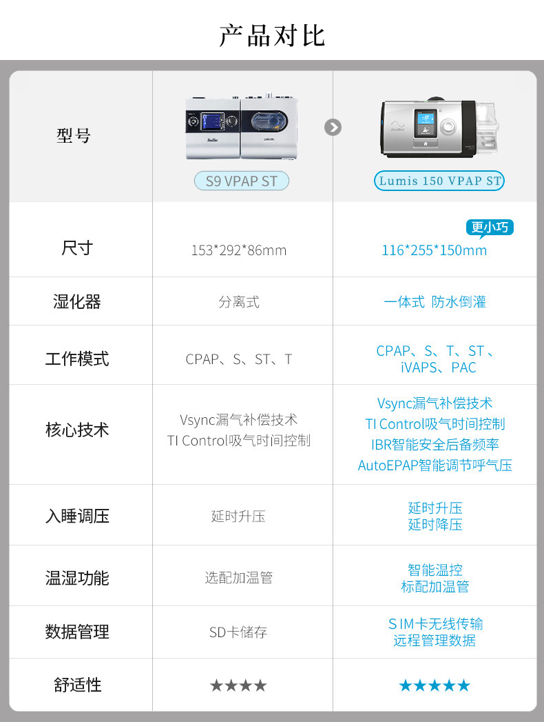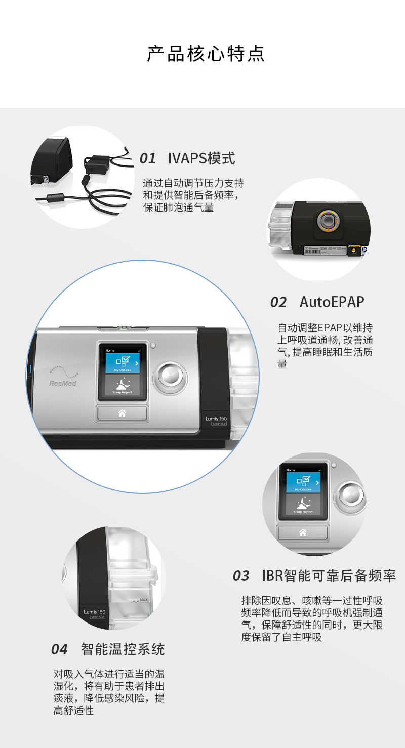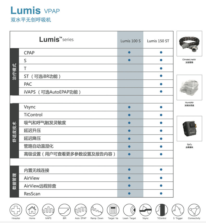 瑞思邁 雙水平無創(chuàng)呼吸機(jī) Lumis 150 VPAP ST 產(chǎn)品特點(diǎn):