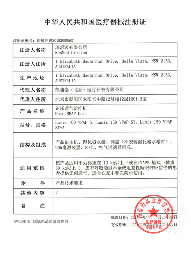 • 商品名稱:Resmed 瑞思邁呼吸機(jī) Lumis 150 VPAP ST