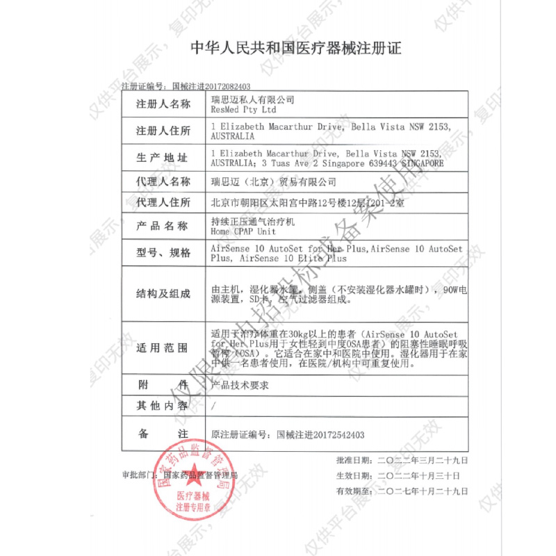 • 生產(chǎn)企業(yè):瑞思邁公司 RESMED