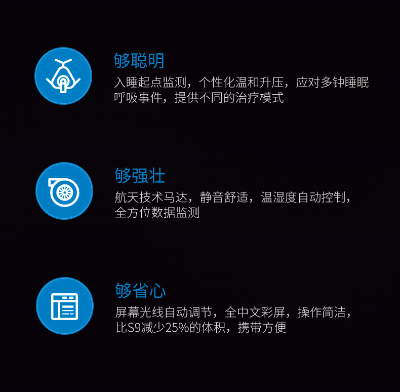 瑞思邁 S10 Plus  全自動單水平睡眠呼吸機 產(chǎn)品功能: