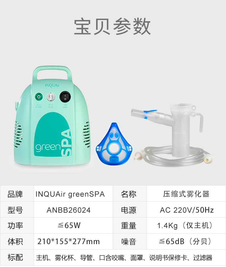 - 名稱(chēng):壓縮式霧化器INQUAir greenSPA