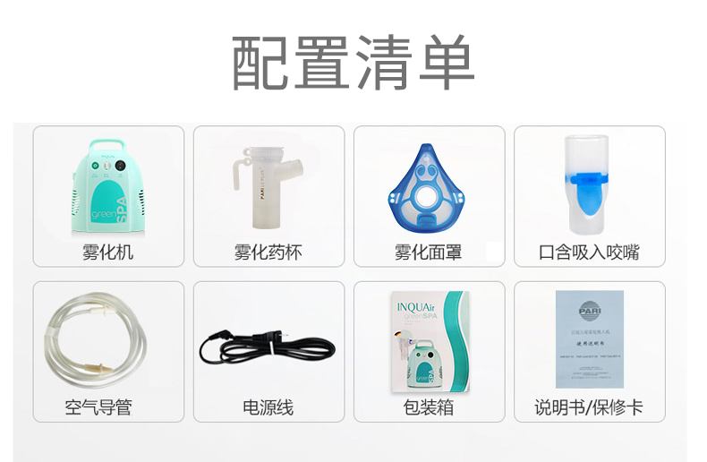 德國(guó)PARI INQUAir Green Spa 家用壓縮霧化機(jī) 配置清單: