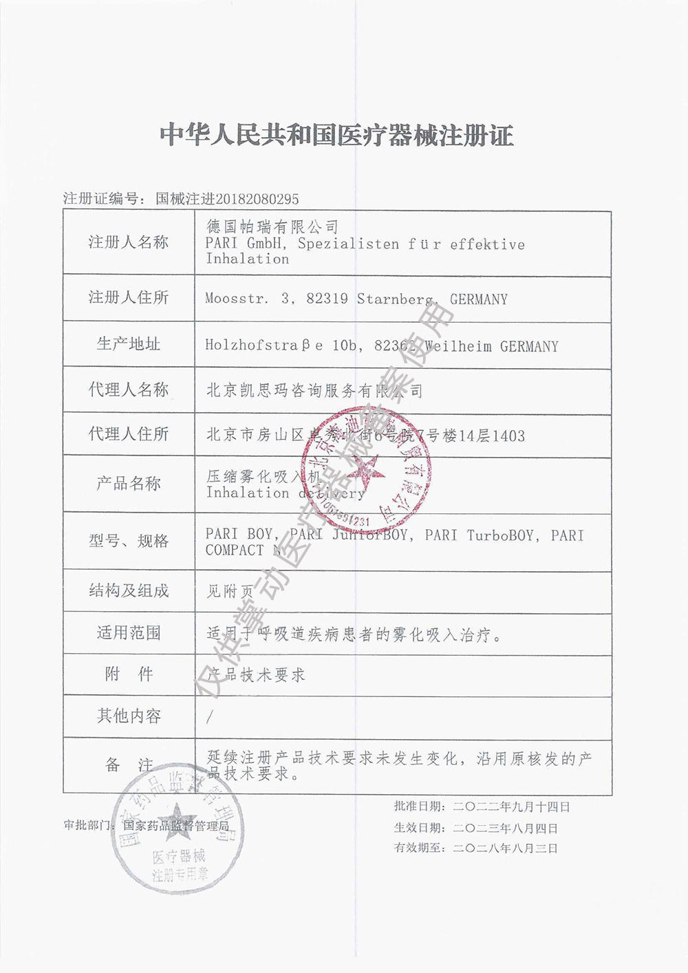 - 生產(chǎn)企業(yè):德國帕瑞有限公司 PARI GmbH