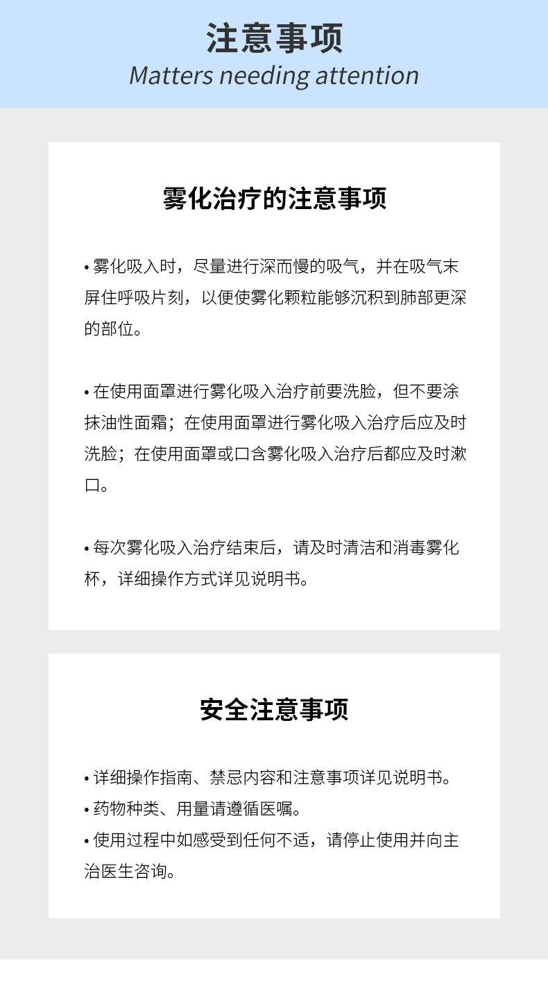 - 產(chǎn)品適用范圍:適用于呼吸道疾病患者的霧化吸入治療。