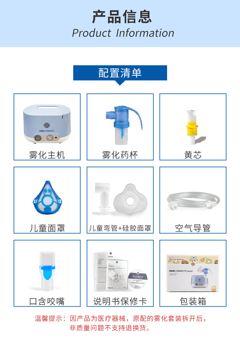 德國PARI 帕瑞霧化器 COMPACT2 Junior 配置清單: