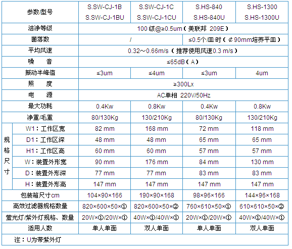 “上海博泰”凈化工作臺S·SW-CJ-1B 適用范圍