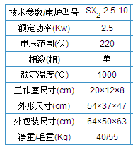 “上海博泰”箱式電阻爐SX2-2.5-10  技術(shù)指標(biāo)