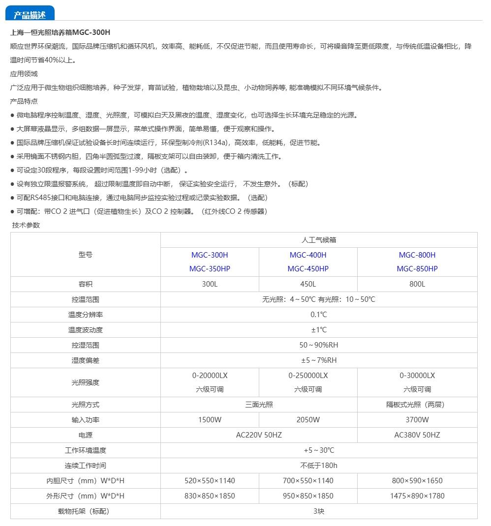 - 商品名稱:一恒人工氣候箱 MGC-300
