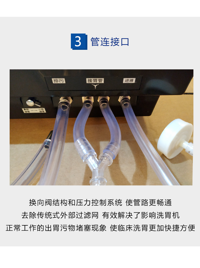 - 轉(zhuǎn)換閥——位置標(biāo)識(shí)清晰,方便用戶根據(jù)所用胃管大小快捷選擇洗胃模式;