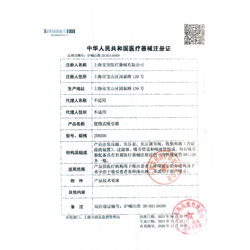 • 產品注冊證號:滬械注準20192140500