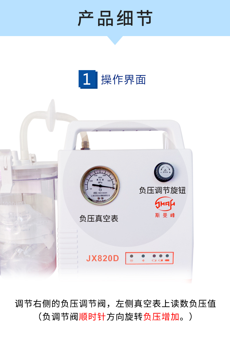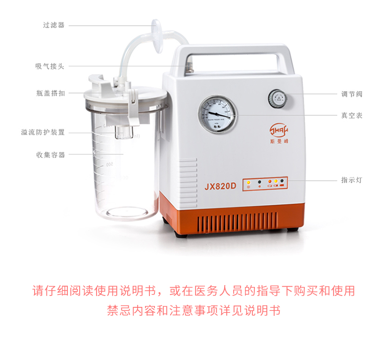 上海斯曼峰 便攜式吸引器 JX820D(鉛酸電池)產品特點: