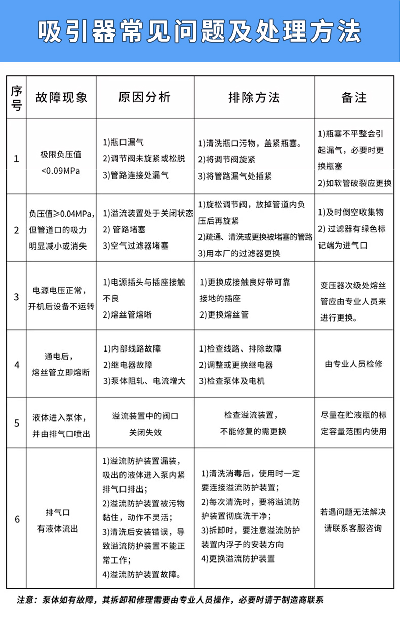 • “無油活塞泵”作為負壓源的電動吸引器日常維護: