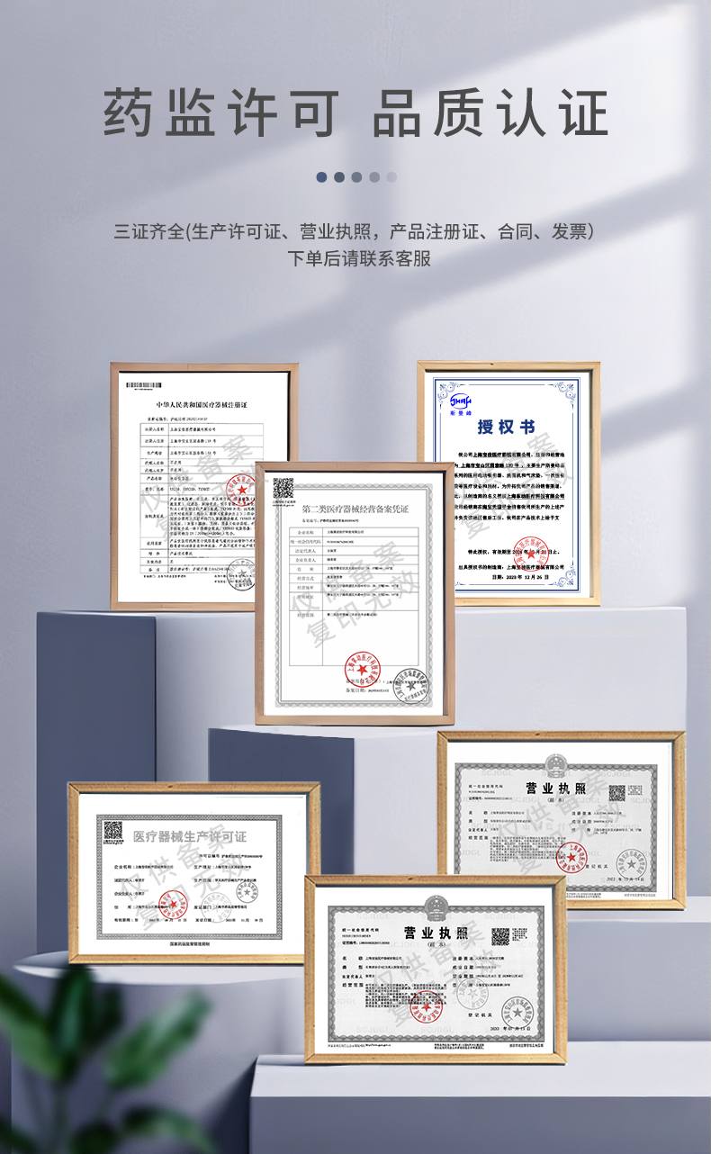 醫(yī)療器械經(jīng)營許可證: 滬靜藥監(jiān)械經(jīng)營許20210003號 第二類醫(yī)療器械經(jīng)營備案憑證: 滬靜藥監(jiān)械經(jīng)營備20220042號 營業(yè)執(zhí)照:統(tǒng)一社會信用代碼91310108676284138X