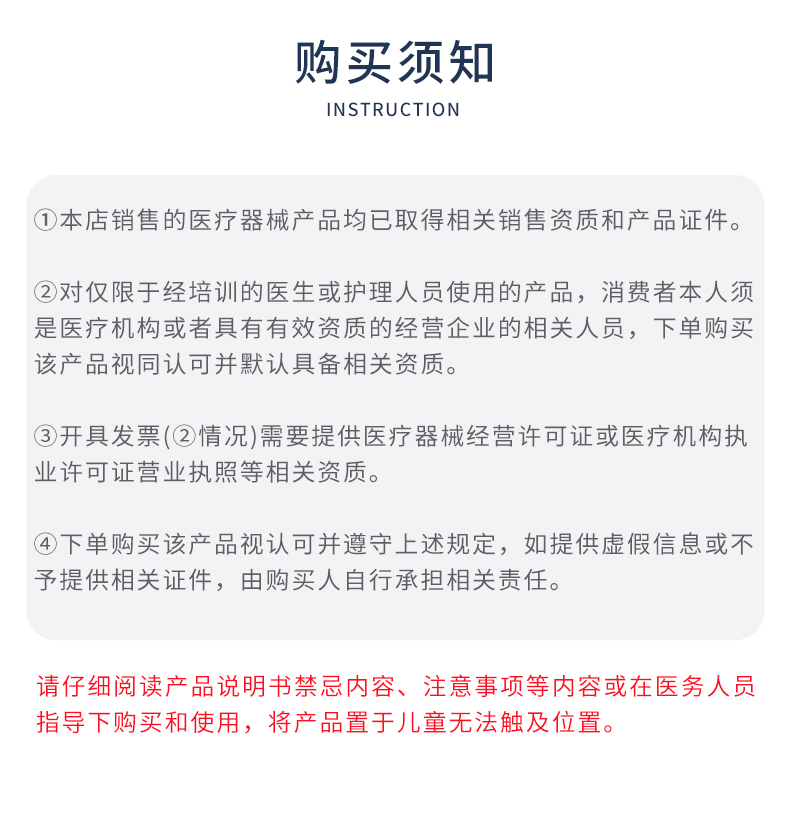 注明:購買者購買后需要提供相關資質,如果不提供相關資質證明,自行下單者則默認為購買者為個人用于非醫(yī)療相關使用場景。使用場景為非醫(yī)療器械場景不受說明書使用人群限制。