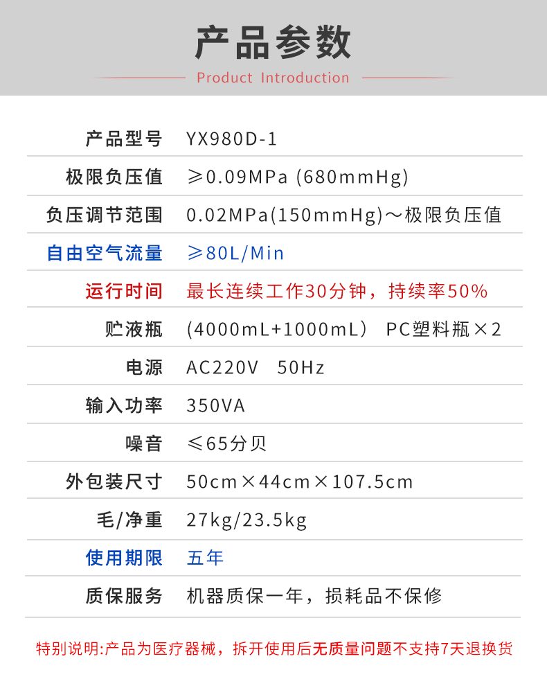 上海斯曼峰電動(dòng)吸引器 YX980D-1 技術(shù)參數(shù):