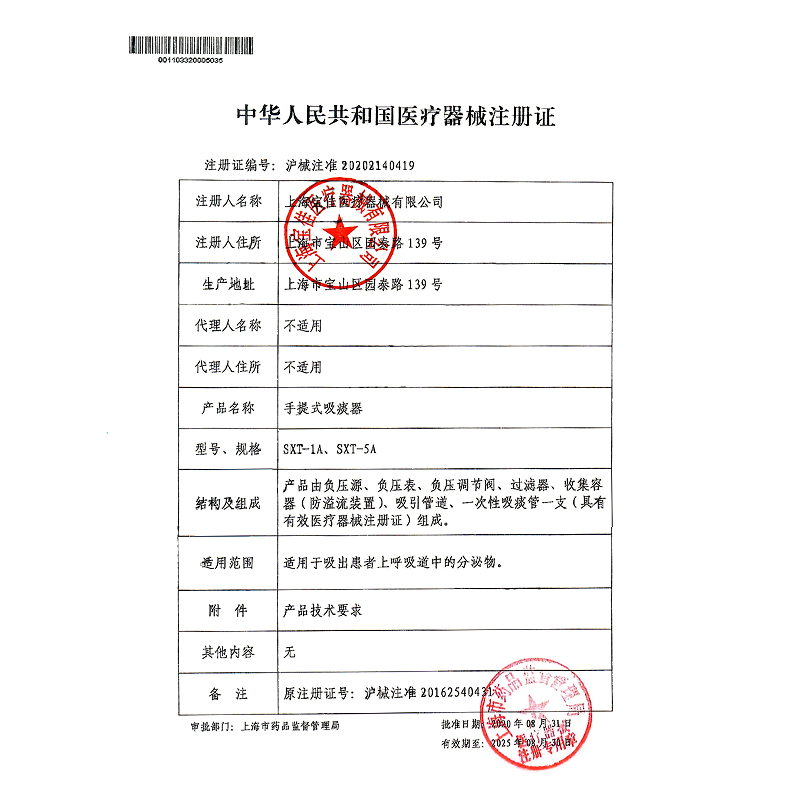 斯曼峰電動吸引器證書上海醫(yī)用吸引器廠(SMAF斯曼峰)