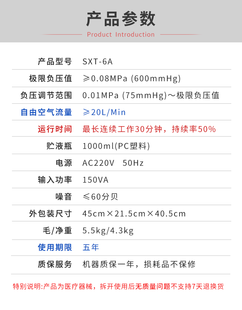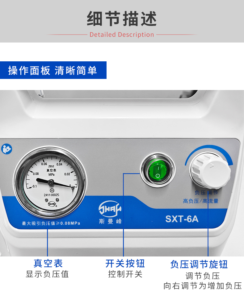 上海斯曼峰 手提式吸痰器 SXT-6A 產(chǎn)品特點: