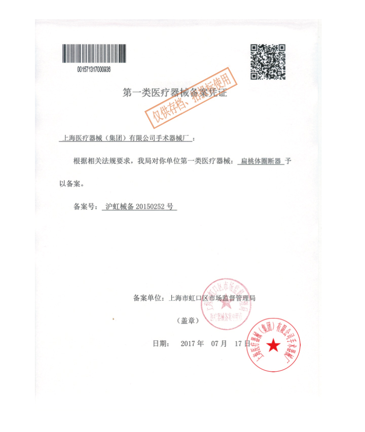 - 產(chǎn)品注冊(cè)證號(hào):滬虹械備20150252號(hào)