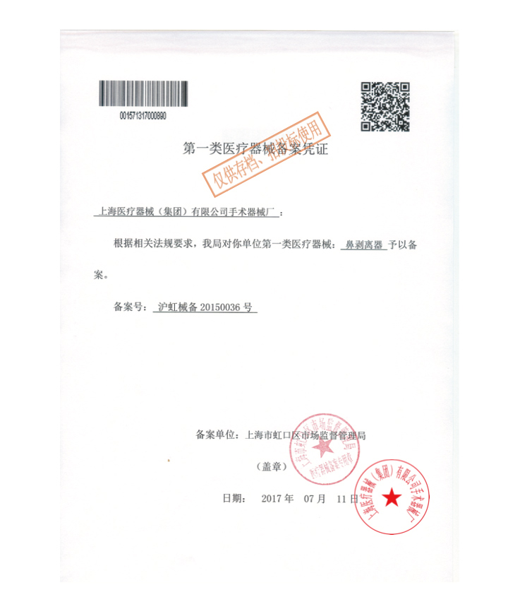 - 產(chǎn)品注冊證號:滬虹械備20150036號