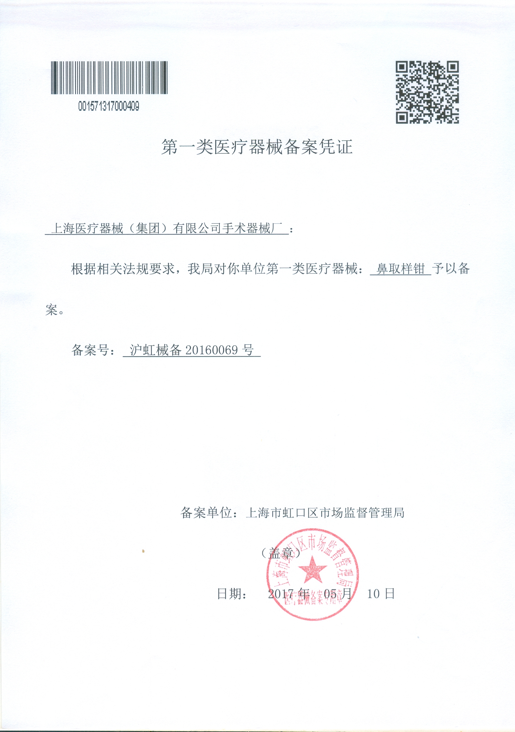 - 產(chǎn)品注冊(cè)證號(hào):滬虹械備20160069號(hào)