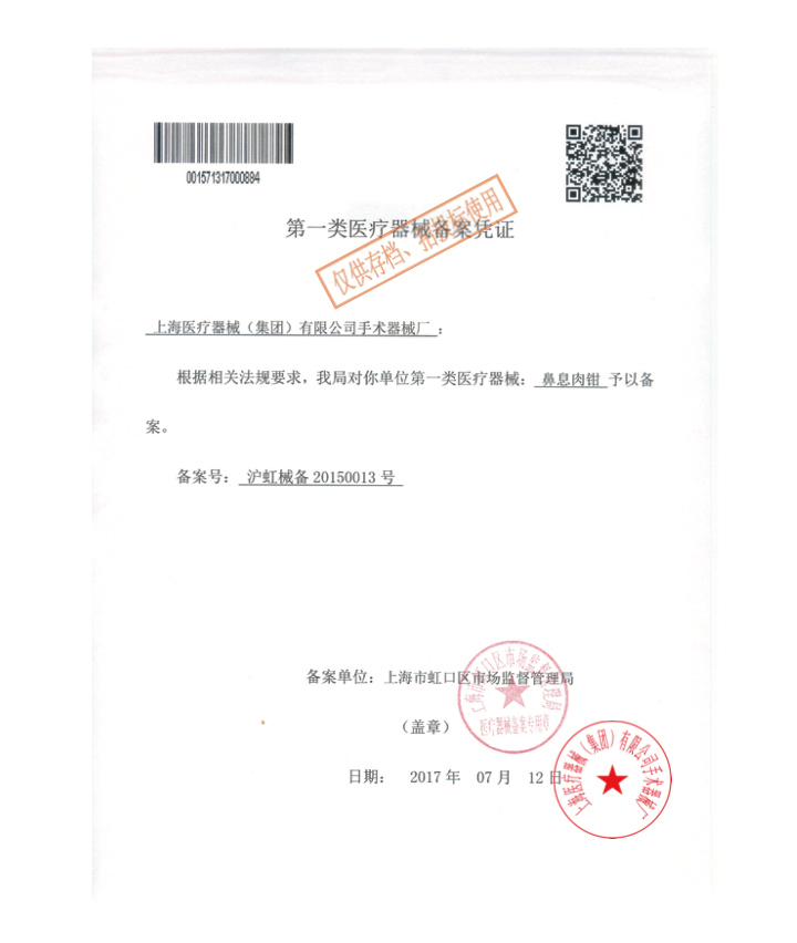 - 產(chǎn)品注冊(cè)證號(hào):滬虹械備20150013號(hào)
