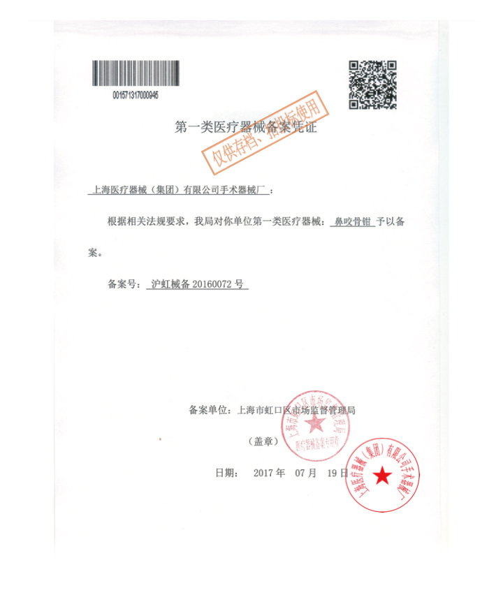 - 產(chǎn)品注冊(cè)證號(hào):滬虹械備20160072號(hào)