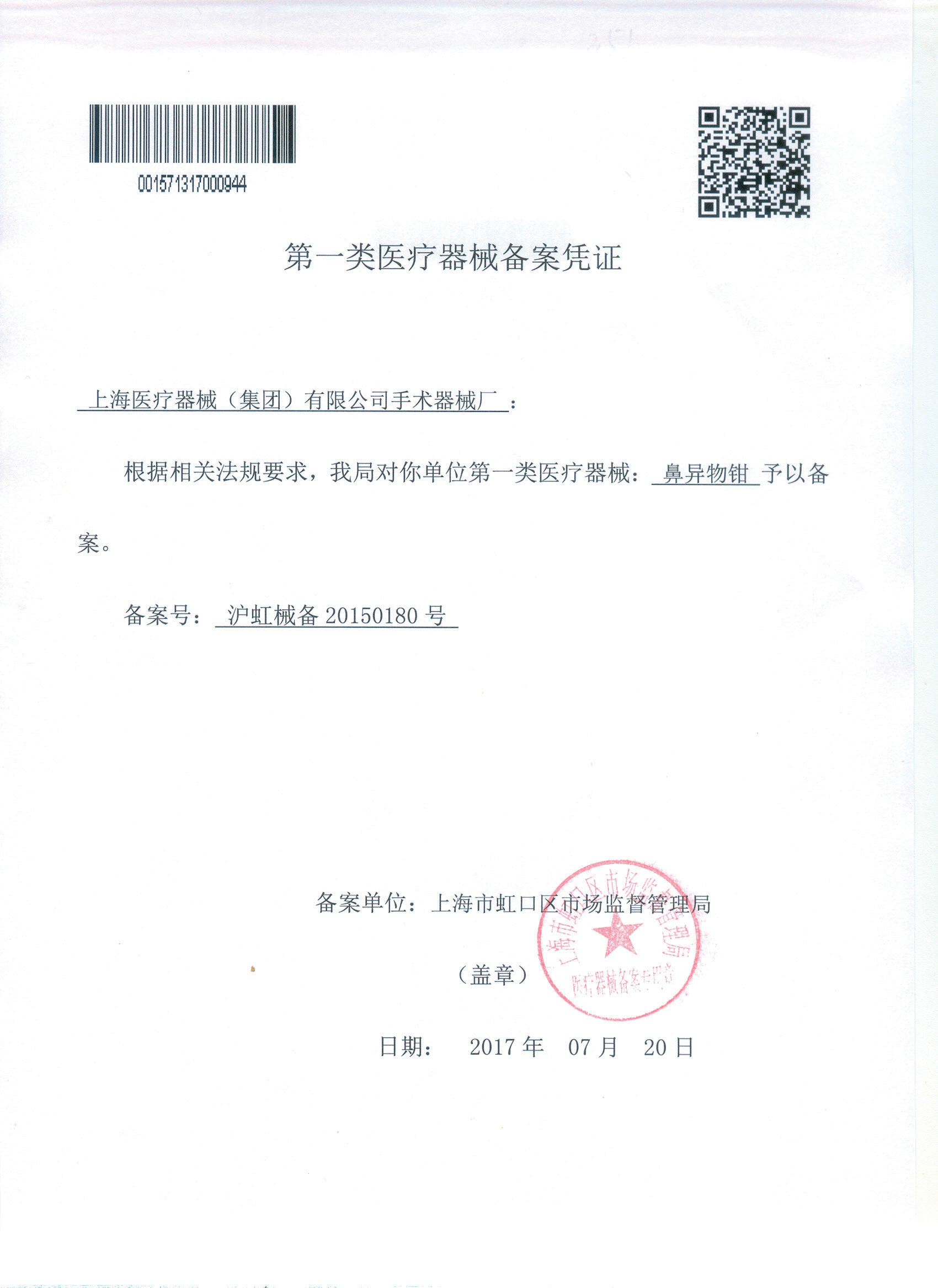 - 產(chǎn)品注冊(cè)證號(hào):滬虹械備20150180號(hào)