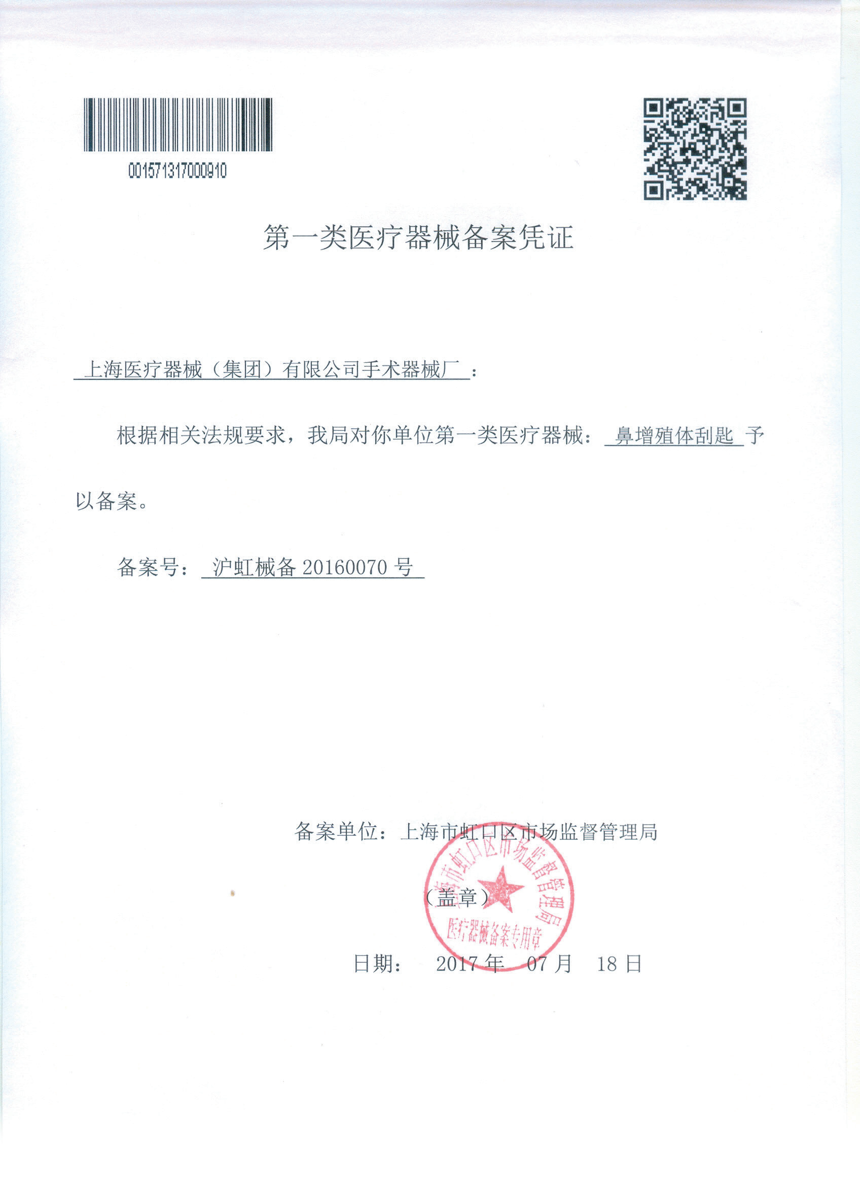 - 產(chǎn)品注冊證號:滬虹械備20160070號