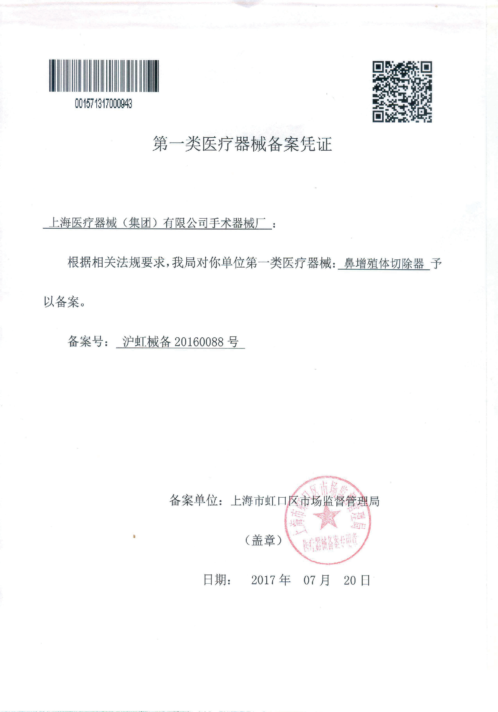 - 產(chǎn)品注冊證號:滬虹械備20160088號
