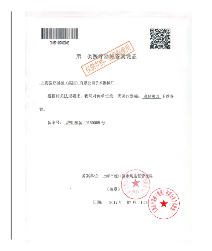 - 產(chǎn)品注冊證號:滬虹械備20150009號