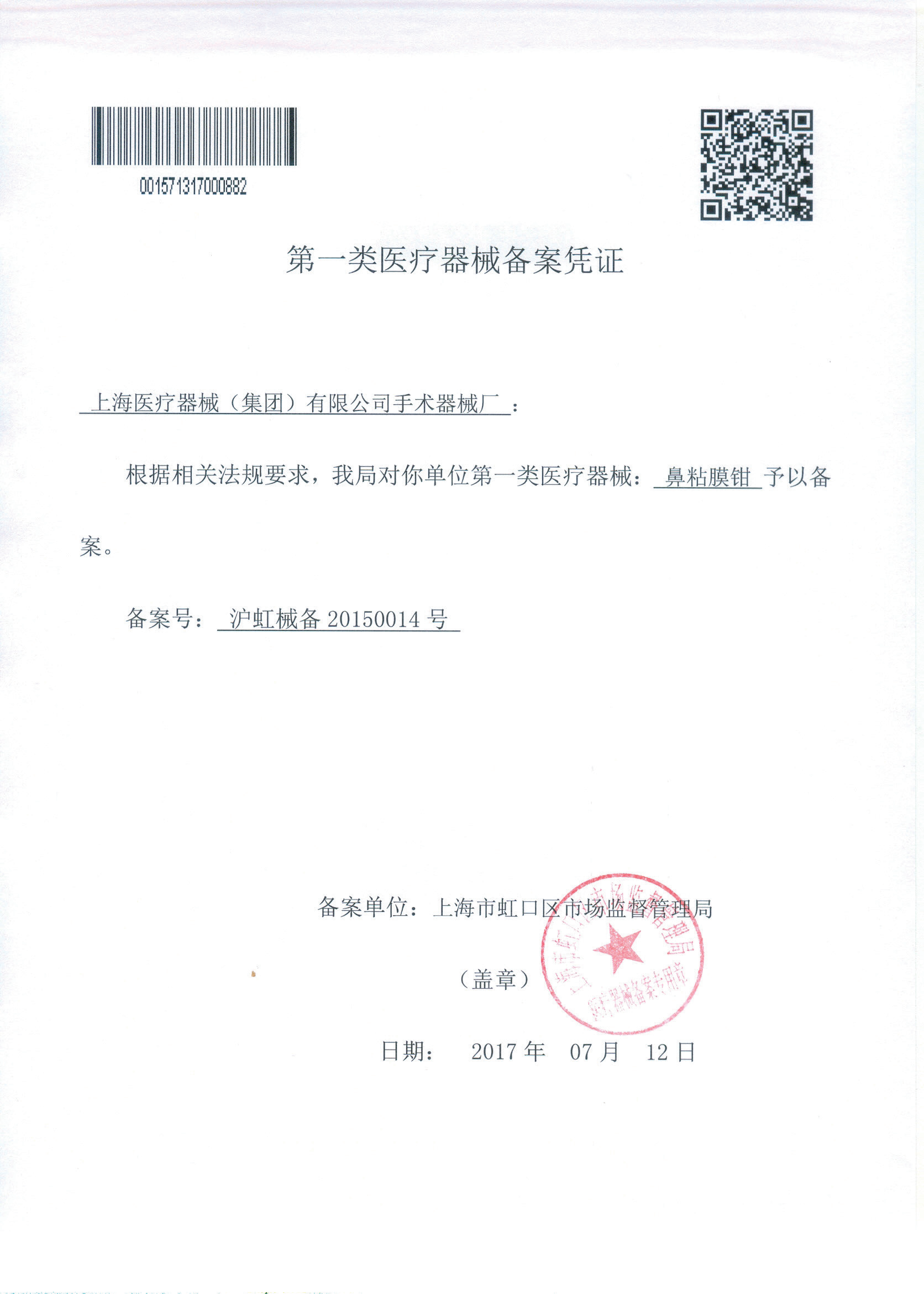 - 產(chǎn)品注冊證號:滬虹械備20150014號