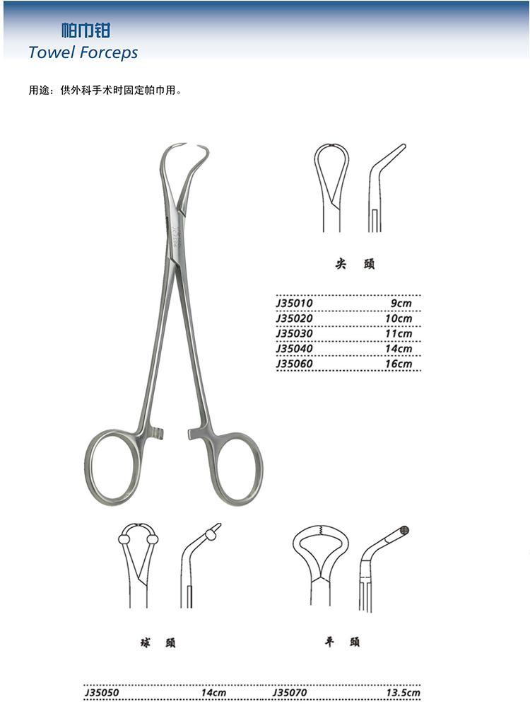- 產(chǎn)品結(jié)構(gòu)及組成:由鉗喙、關節(jié)和鉗柄組成,頭部有網(wǎng)紋齒,尾部有指圈,中間穿鰓后用鉚釘連接固定,在兩指圈間有鎖止牙,起夾持固定作用。帕巾鉗由不銹鋼材料制成。可重復使用。