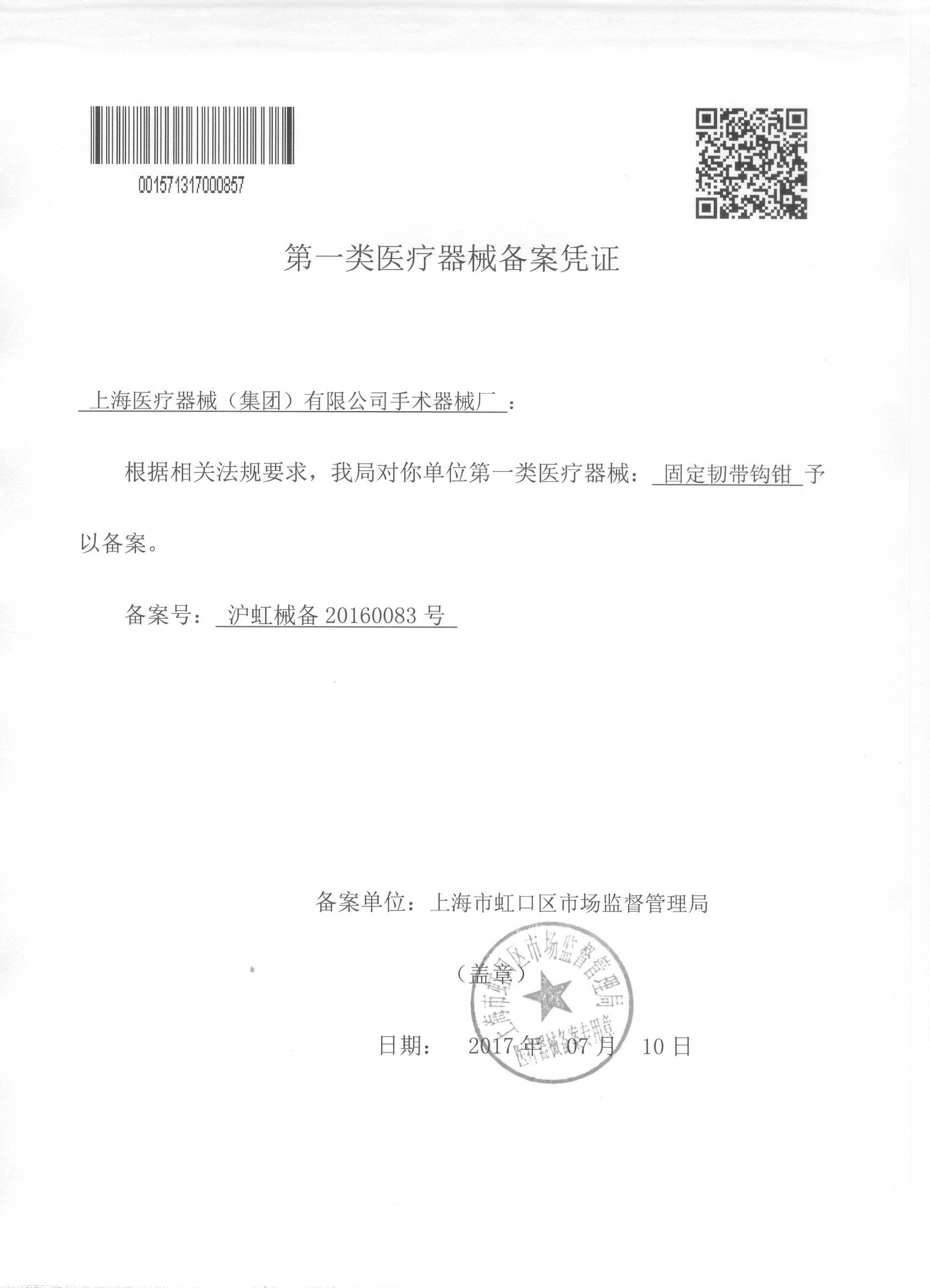 - 產(chǎn)品注冊證號:滬虹械備 20160083號