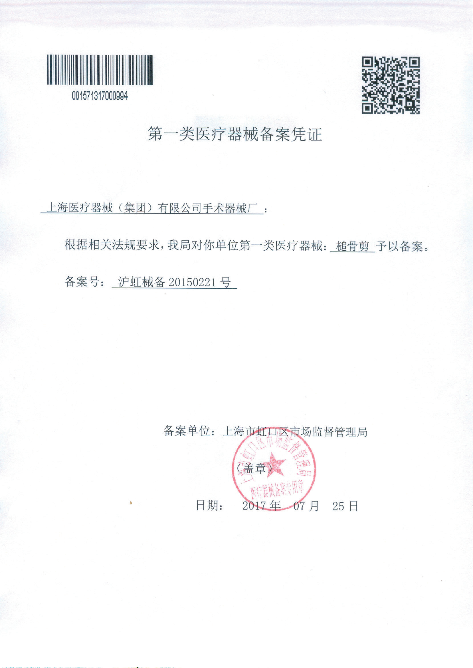- 生產(chǎn)企業(yè):上海醫(yī)療器械(集團)有限公司手術(shù)器械廠(金鐘)