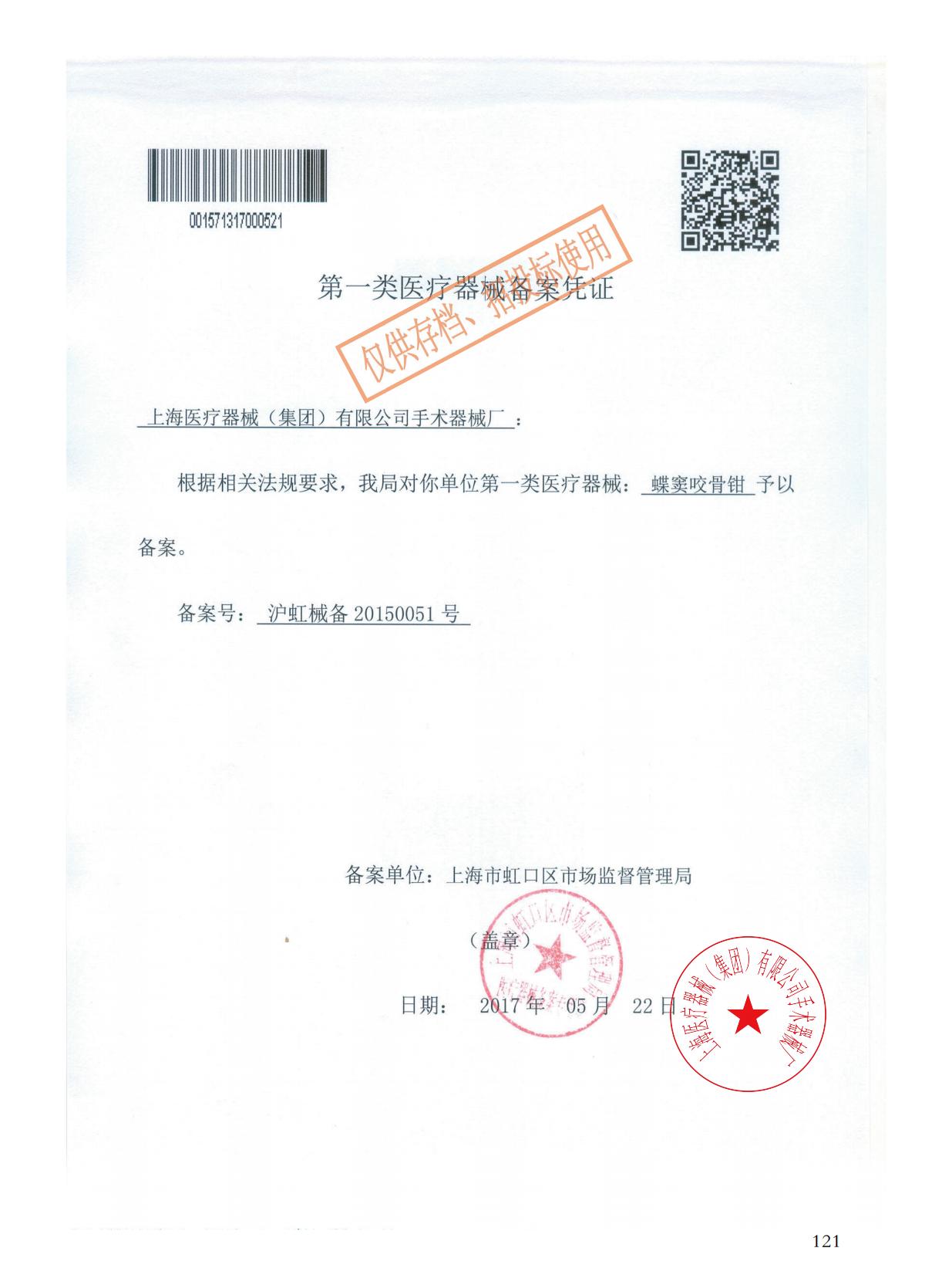 - 產(chǎn)品注冊(cè)證號(hào):滬虹械備20150051號(hào)