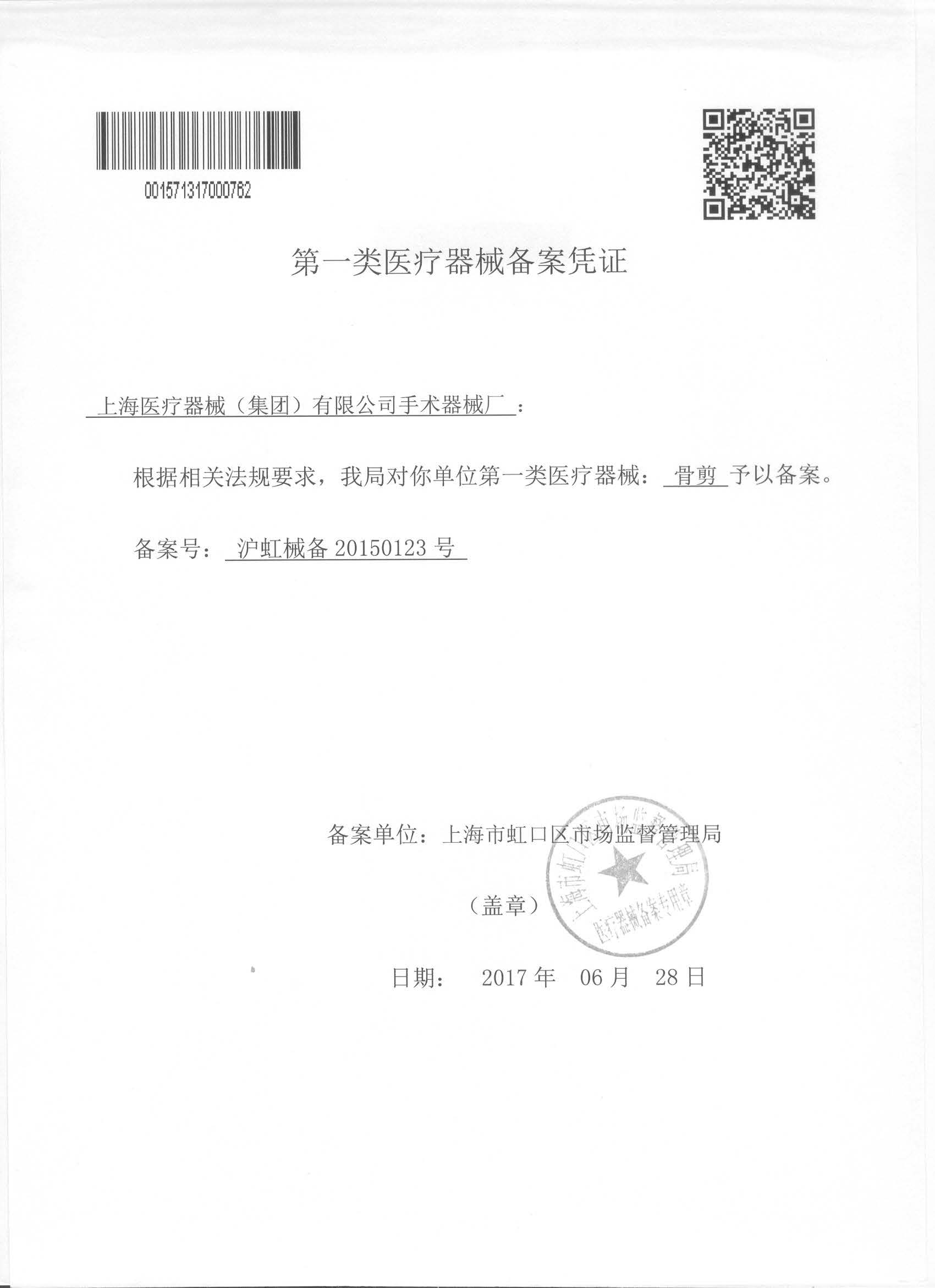 - 產(chǎn)品注冊證號:滬虹械備 20150123 號